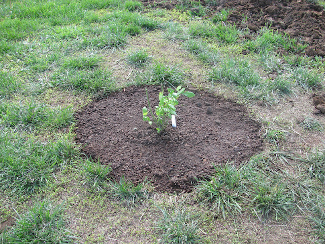 We did not buy all of the trees for the food forest this year; trees are expensive! I hope to complete the main plantings this fall and next spring. The last thing we accomplished on the permablitz day was to plant the trees I did have along the berms.